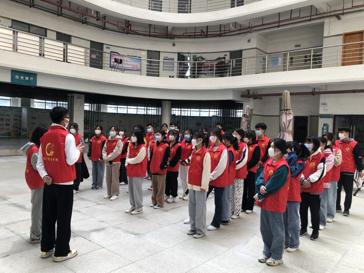 1340志愿者们按时到达一区校史馆,有序排队进行签到。由21级经贸青协干事黄恒轩对活动内容进行讲解,做好打扫前的准备工作。志愿者们认真负责地听从工作安排,分组前往课室进行清洁打扫。