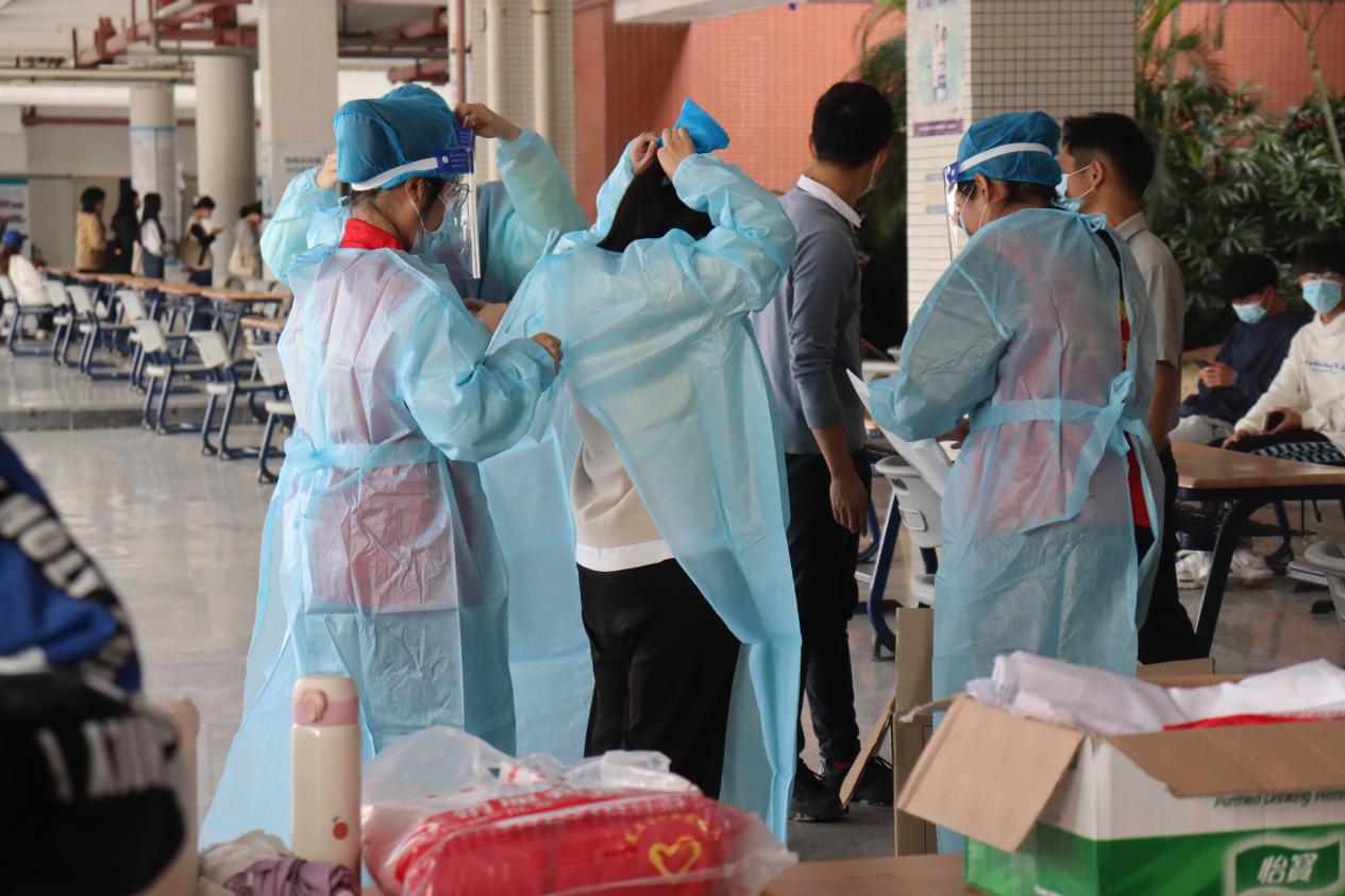 早上8:30,为了顺利开展核酸检测工作,志愿者准时到达工作地点,有序排队签到,做好核酸检测前的准备工作。在这次核酸检测工作中,志愿者们都穿戴上了防护服,医护面罩以及医用手套等防护工具,防护措施比以往更加严格了。一切准备就绪后,医护人员志愿者各司其职,核酸检测工作正式开始。