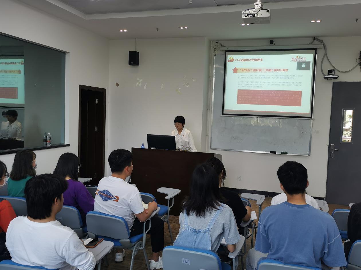 2022年全国两会在北京如期举行,会场内外、线上线下,从人民大会堂主会场,到梅地亚新闻中心“两会通道”,再到街头巷尾,两会声音牵动着民心。在第十三届全国人大五次会议记者会上,国务院总理李克强在北京人民大会堂出席记者会并回答中外记者提问,回应了中国经济、就业情况、中美关系、乌克兰局势、两岸关系等热点问题。今年的两会背景特殊,全国人民对此满怀期待,本次学习以“聚焦两会,关注时事”为主题,引导学生关注当前形势、倾听主流声音、分析时事热点,做为新时代青年,要把思想和行动统一到党和国家的部署上,提高思想政治意识,增强国家主人翁的使命感,自觉投身国家建设。支部书记在会上要求学生党员要树立高度的社会责任感,充分认清当下形势和任务,强化责任与担当,坚持新发展理念、解放思想,学习和贯彻两会精神。