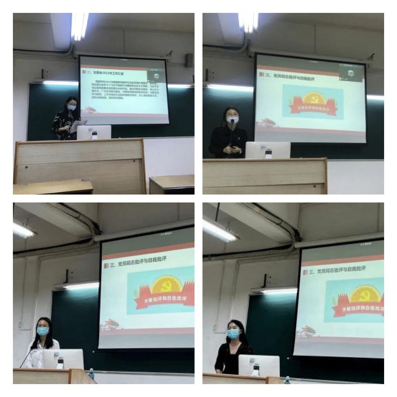 会前,支部组织全体党员深入学习了党的十九届六中全会精神,以及《中共中央关于党的百年奋斗重大成就和历史经验的决议》和《中国共产党组织工作条例》等文件材料,围绕个人对一年来学习党的理论路线方针政策情况、完成组织交办的各项任务情况、个人业务能力提高情况和为师生服务情况等方面内容,作出自我鉴定,剖析反思,并形成个人对照检查材料。