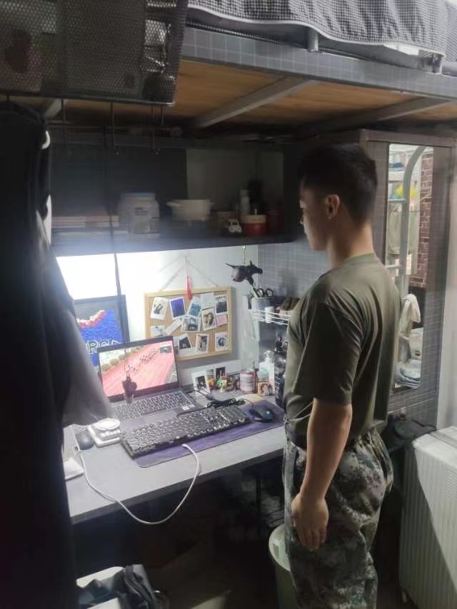 疫情期间,学生在宿舍参加“国旗下的青春”线上升旗活动