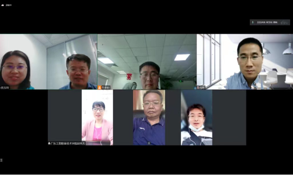 高校毕业生就业协会教产分会副秘书长、京东教育研究院秘书长孙文升,京东郭俊经理,宫玉玲经理参加了线上会议。校企双方进行了深入细致交流了课程资源建设、京东认证讲师、产业教师培养、产教融合型企业培育等,提出具体建设方案。