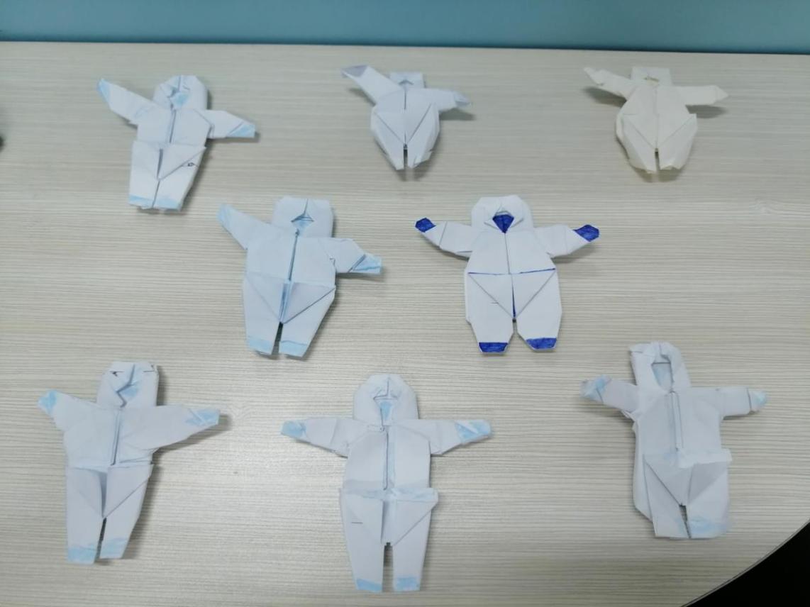 这次活动以采用视频教学为主,同学们自行发挥为辅。让同学们学习各类手工制作,如童年的纸飞机、近期冲在疫情防控一线的医护人员、小青蛙等,同学们将折好的成品,送予医护人员,感谢他们为疫情防控做出的巨大贡献。