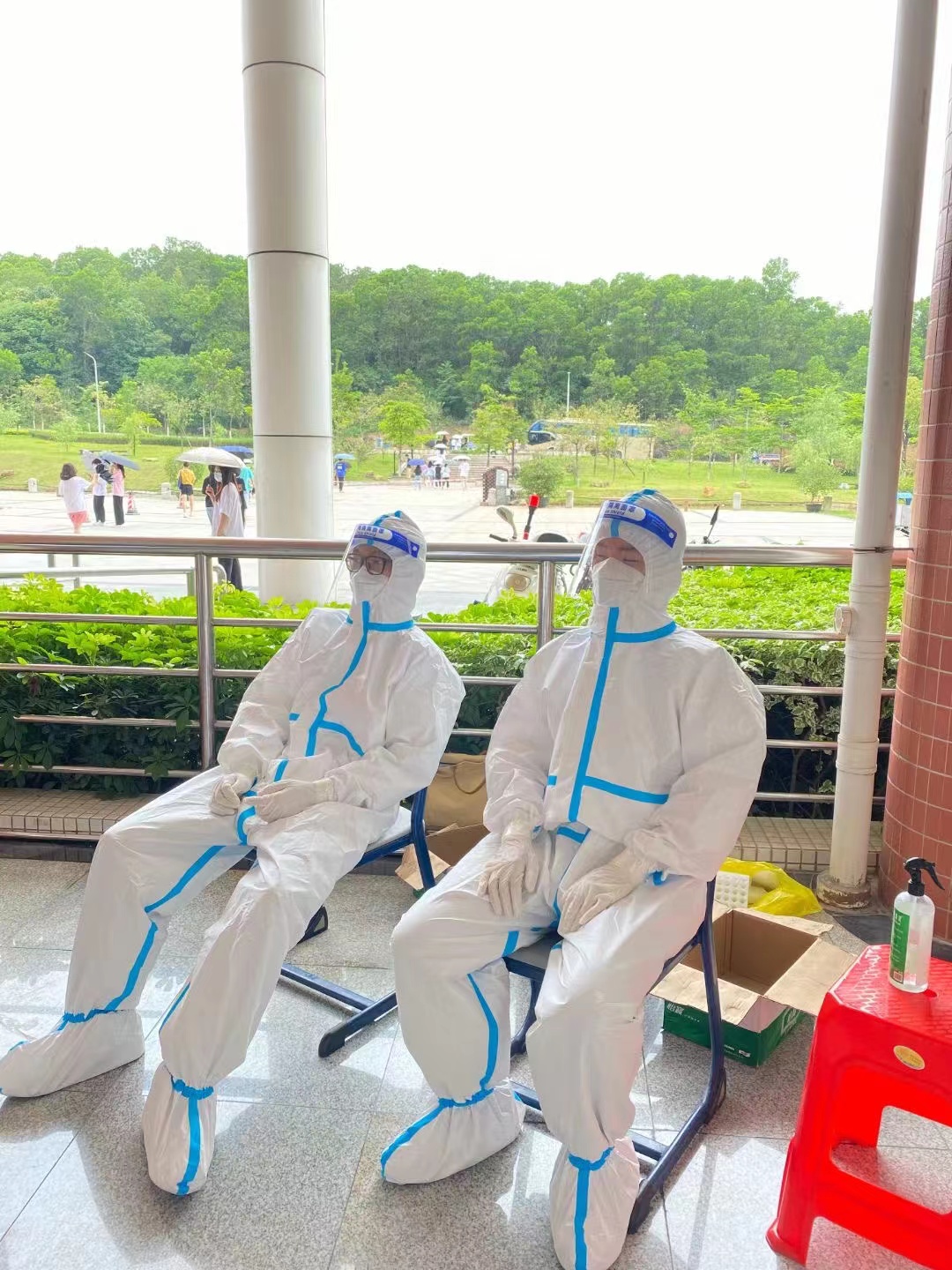 4月28日,广州疫情反复,全员核酸警报再次拉响。医护人员经过8小时的奋战,一鼓作气,滴水未进为全校12000多名师生完成核酸检测后,精疲力竭的瘫坐在椅子上。同学们将折好的“小白”送给医护人员,并表达对他们的感谢和敬意。医护人员拿到同学们亲手折的“小白”后激动不已,并表示,同学们如此用心,他们再累也是值得的。