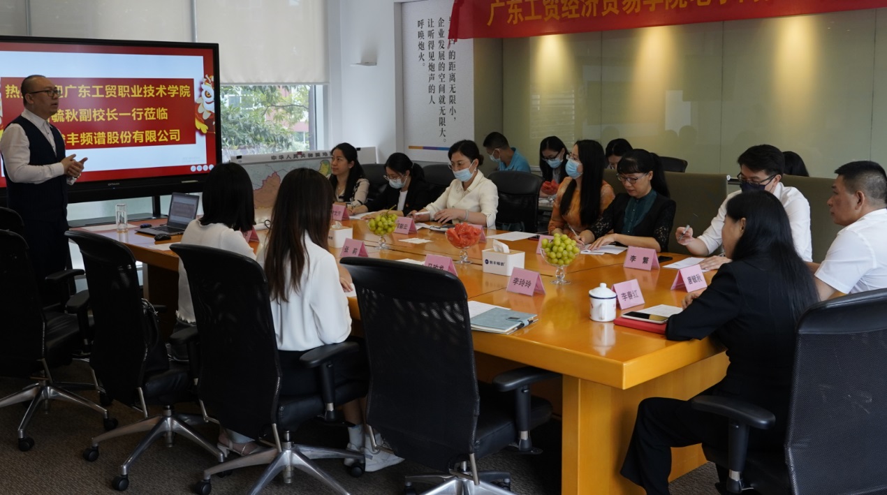 为贯彻落实党中央、国务院关于高校毕业生就业工作的决策部署,执行全国普通高等学校毕业生就业创业工作电视电话会议的有关要求,贯彻落实省毕业生就业工作的总体部署,落实学校访企拓岗促就业专项行动要求,5月19日下午,新葡的京集团8814vip党委委员、副校长唐毓秋率领经济贸易学院领导班子和专任教师一行18人走访了经济贸易学院合作企业广东骏丰频谱股份有限公司(下简称:骏丰频谱),受到了骏丰频谱董事会秘书、总部人力资源发展中心总监李春红等热情接待。双方就促进校企合作、产教融合,推进经贸学院毕业生更加充分、更高质量就业进行深入交流。