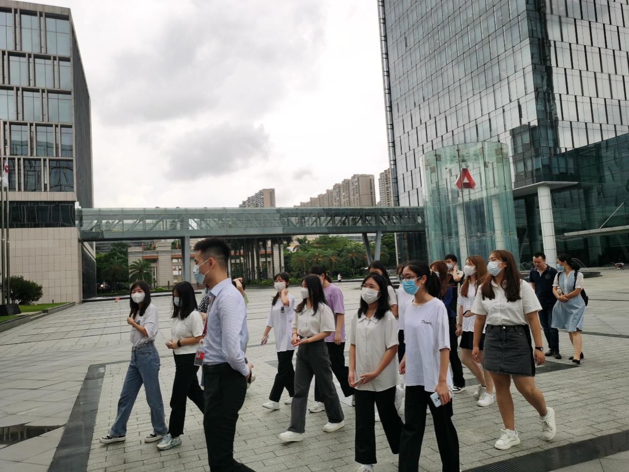 广发银行股份有限公司信用卡中心的陈才威经理,朱明武、叶奕宁、吕晓静等三位主管带领大家参观了广发银行园区内的工作、生活和休闲娱乐场所。随后在新进员工培训办公室,陈才威经理就实习期间的工作内容给同学们做了简单的介绍,并解答了同学们提出的各种问题。