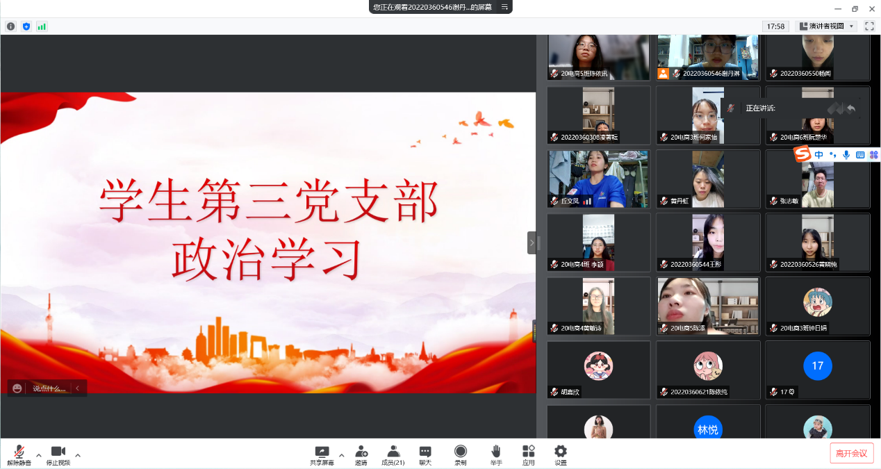 经济贸易学院各学生党支部组织全体党员,观看了大会直播,同时学习领会习近平总书记重要讲话精神。