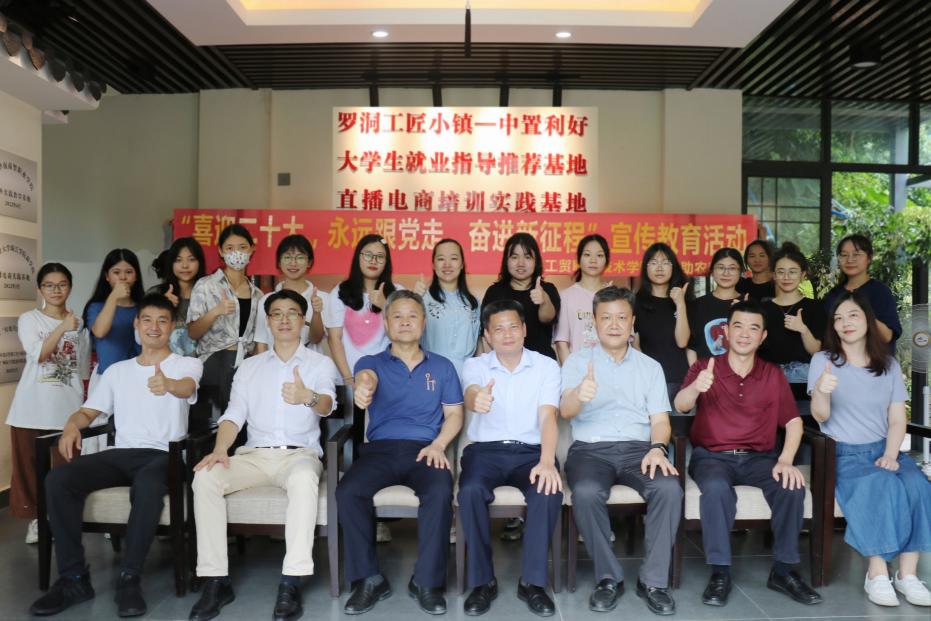 7月8日上午,由经济贸易学院党总支指导建立,经贸辅导员工作室、经贸团委、学生会成员共同组成的助农梦之队一行20人抵达罗洞工匠小镇开展推普乡村振兴电商直播“普通话+技能培训”活动。