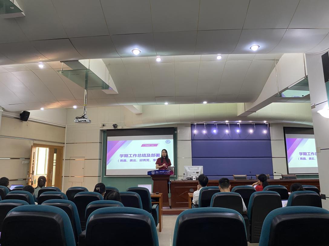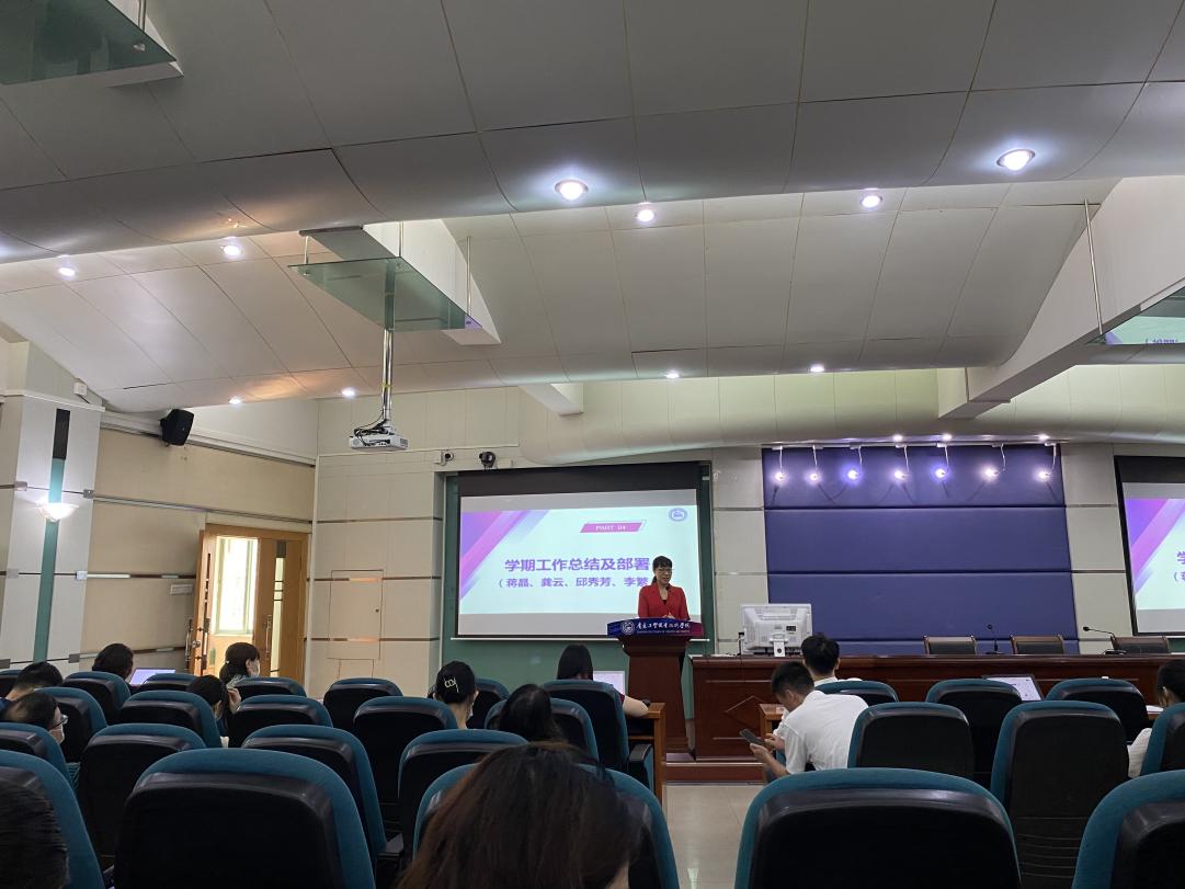 在2021-2022学年工作的结尾,学院领导逐一进行工作总结汇报。副院长蒋晶、党总支副书记龚云、院长邱秀芳、党总支书记李繁分别对教学工作、防疫工作及学生管理工作、学院管理工作、党建、思政教育工作等进行详细总结,并对2022-2023学年寄以工作期望、作出战略部署。