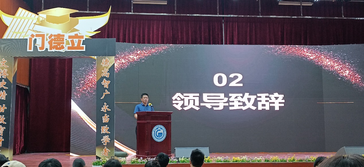 唐毓秋副校长在典礼上致辞,他代表学校向经贸学院默默耕耘、无私奉献、恪尽职守的每一位教职工表示祝福和感谢。他表示,“回首过去,我们心情激荡;展望未来,我们任重道远。国运兴衰,系于教育。百年大计,教育为本。教师担负着承前启后、继往开来的光荣使命,教师身系着国家、民族的重大责任,这份责任决定了教师要更加注意自己的一言一行,一举一动对学生、对家长、对社会的影响。教师担负着这样重大的责任,心中必要有大爱,有大爱必明大耻,明大耻必有所为有所不为,只有这样,才能以对国家、对民族、对社会的强烈责任感来从事我们的事业,真正培养出将来建设国家的栋梁之才。”