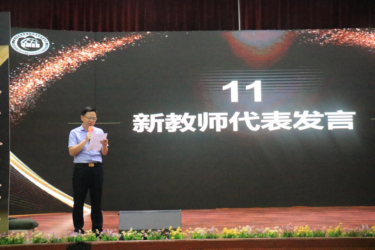 宣誓仪式后,经贸学院伍炜勤博士作为新教师代表发言。伍博士是今年经贸学院引进的高层次人才之一,期待着新教师的加入,为经贸学院教学科研及校企合作等方面的工作带来新气象,注入新活力。