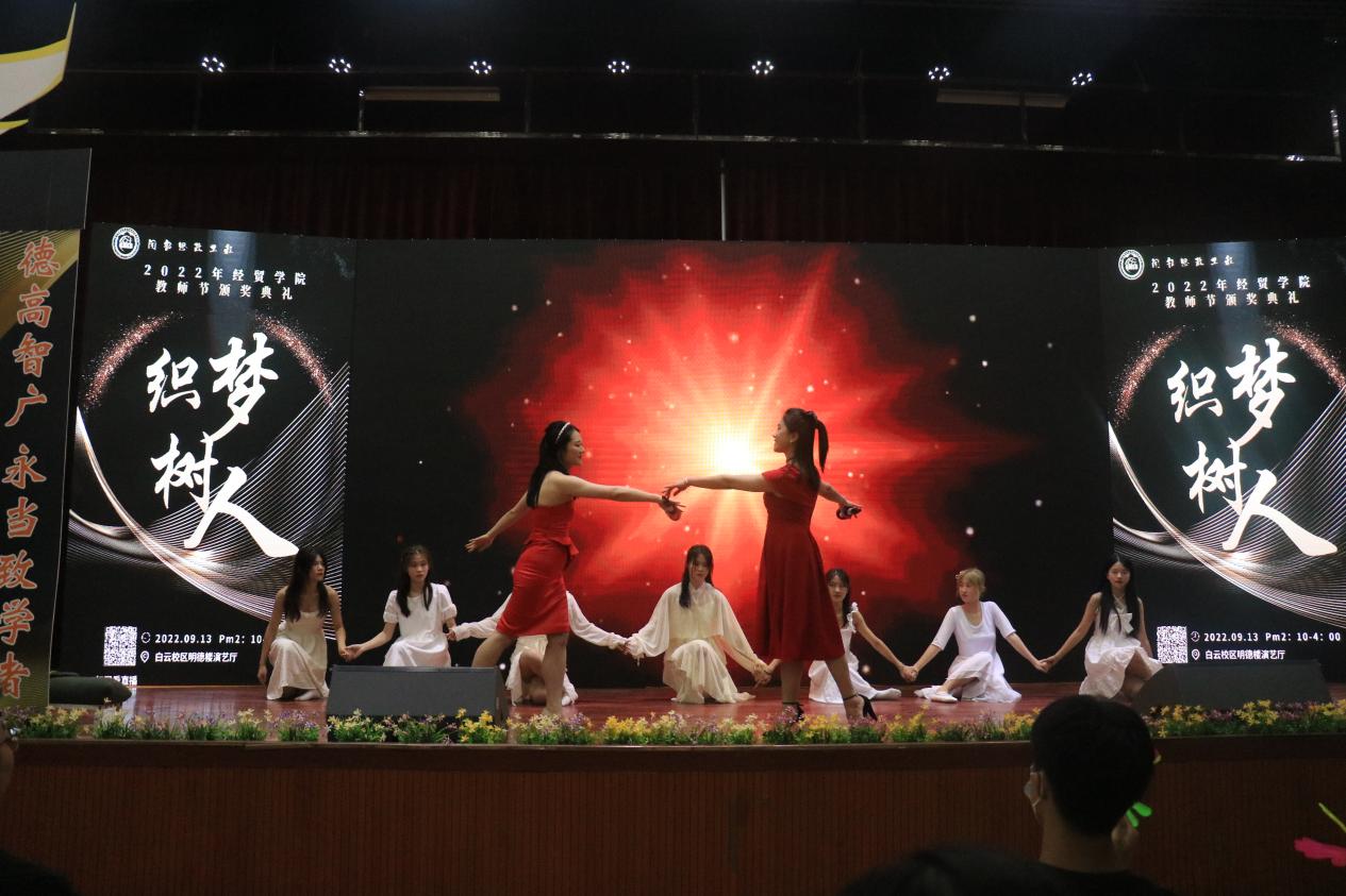 “面对希望,逆光飞翔会更有力量。只要带上全部的执着和坚强,就能无限地接近梦想!师者无畏,教师们为了自己的教育梦想,永远都在逆光而行,追梦不止!”典礼上不仅有铿锵的誓言和精彩的发言,更有经贸学院教师为大家带来动听的歌声。