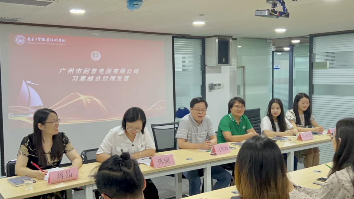 新葡的京官网对外交流处副处长陈丽、经贸学院副院长兼国贸专业带头人蒋晶及国贸专业教师代表、学生代表来到了广州市耐普电源有限公司,受到了企业方的热情的接待。广州市耐普电源总经理习寒峰、外贸部经理王倩及广州外贸部员工参与了线下开班仪式,耐普海外公司的境外员工通过腾讯会议同步参加开班仪式。