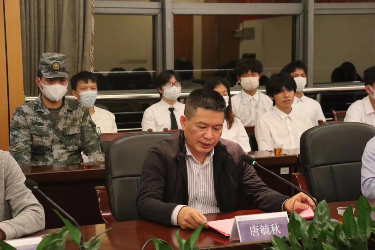 围绕征兵工作,唐毓秋指出,切实做好大学生征兵工作,是党和国家赋予高校的政治责任和历史使命,是学校全面贯彻党的教育方针,落实思想政治教育任务,做好立德树人和人才培养的重要工作。他要求全体师生要认清形势,面对百年未有之大变局,全体师生必须增强危机感,提高认识,牢固树立忧患意识和使命意识,居安思危,防患未然;要求同学们要把握机遇,军营是个大熔炉,部队是所大学校,是同学们体验部队生活、丰富人生经历、磨练意志品质、培养吃苦耐劳精神、养成雷厉风行和严谨细致的工作作风的绝佳途径。要求学院要服务到位,细致摸排学生参军意愿,精准建立学生征兵台账,一对一安排辅导员做好政策宣讲和跟踪服务。