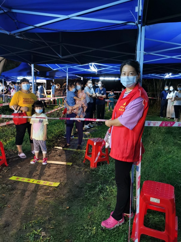 辅导员吴海英同志在兼顾居家办公与线下办公的同时,积极联系居住地社区党组织做好核酸现场秩序维护、引导信息填报、查验健康码、测温、录入核酸人员信息、特殊群体帮扶等工作,同时加入社区网格党支部,积极参加核酸检测服务,每次服务时常3小时以上。