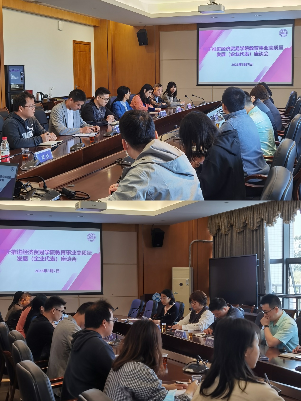 会议伊始,李繁、邱秀芳首先向受邀参会的企业代表表示欢迎和感谢,并向他们介绍了学校和学院的基本情况,同时表示,学院与在座企业开展校企合作源远流长,希望未来能够继续加强联系、及时沟通,经贸学院在展示近年来标志性成果的基础上,诚邀企业方畅所欲言,共同为校企合作继续深度高质量发展建言献策。