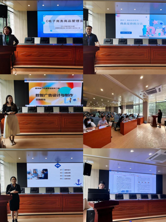 为深入贯彻习近平总书记关于职业教育工作的重要指示、全国职业教育大会精神和新修订的职业教育法,探索“岗课赛证”综合育人,推进高水平、结构化教师教学创新团队建设,促进“能说会做善导”的“双师型”教师成长,不断提高教师的师德践行能力、专业教学能力、综合育人能力和自主发展能力,经济贸易学院于3月14日下午在天河校区东区报告厅开展2023年度教师教学能力比赛院级选拔赛。经贸学院党总支书记李繁、院长邱秀芳教授、副院长蒋晶副教授及全体教职工参加了此次比赛,广东生态工程职业学院经济贸易学院书记兼院长尹冬梅教授、广东轻工职业技术学院别文群教授作为校外专家参与了本次竞赛。