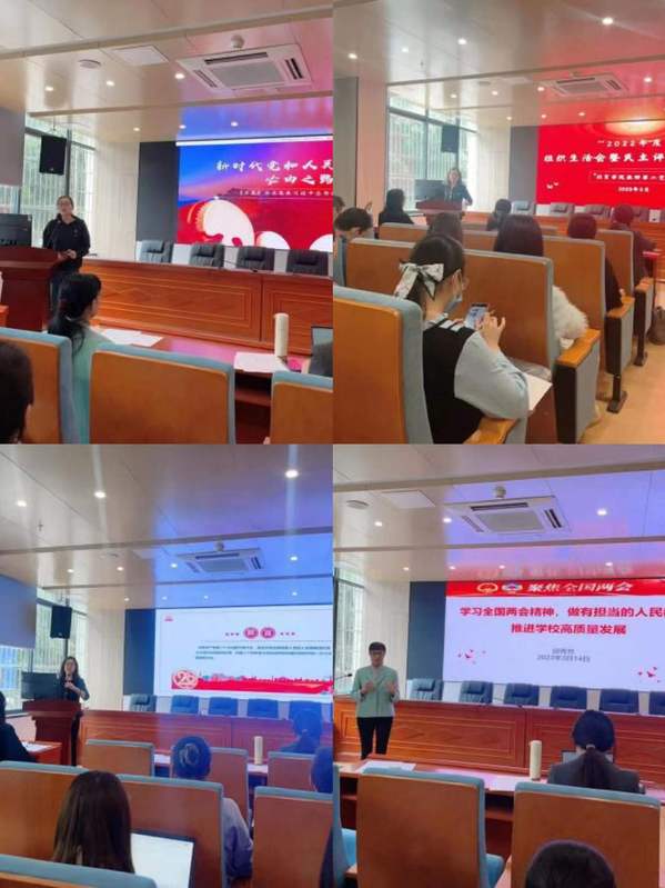 3月14日下午,经贸学院教师第二党支部在东区报告厅召开了2022年组织生活会暨民主评议党员会议。党总支书记李繁,支部书记蒋晶,支部党员暨经贸学院院长邱秀芳,以及支部全体党员参加了本次党员活动。
