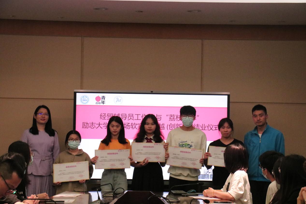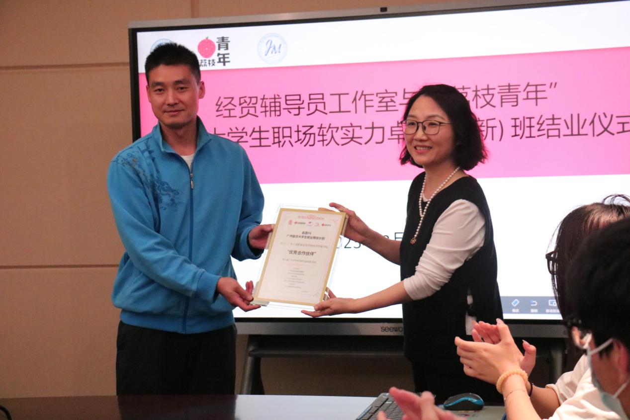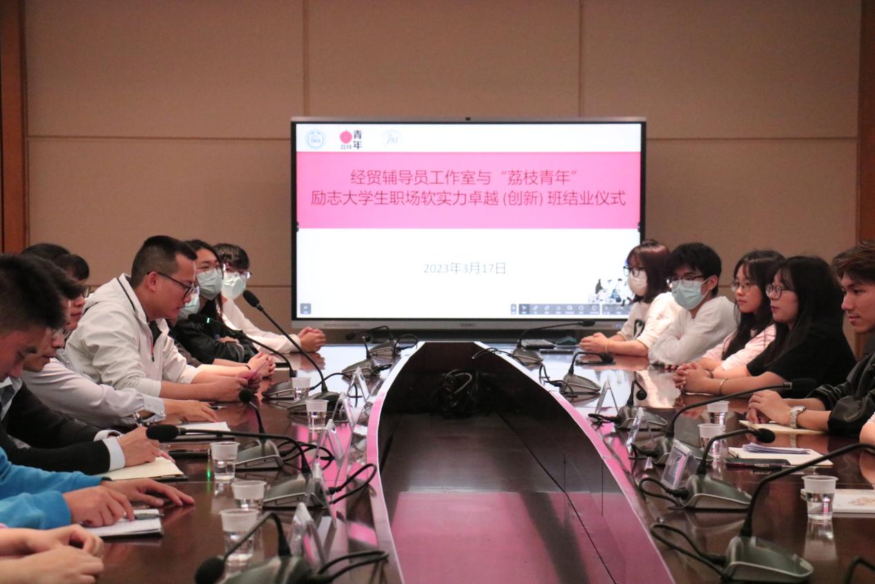3月17日下午,经济贸易学院与广州荔枝青年成长促进会在新葡的京集团8814vip白云校区明德楼一区204中心会议室举行经贸学院辅导员工作室与广州荔枝青年成长促进会励志大学生职场软实力卓越(创新)班结业仪式。学院班子成员李繁、邱秀芳、龚云、蒋晶出席会议并与“荔枝青年”会长张玉玲等一行三人开展深入交流。