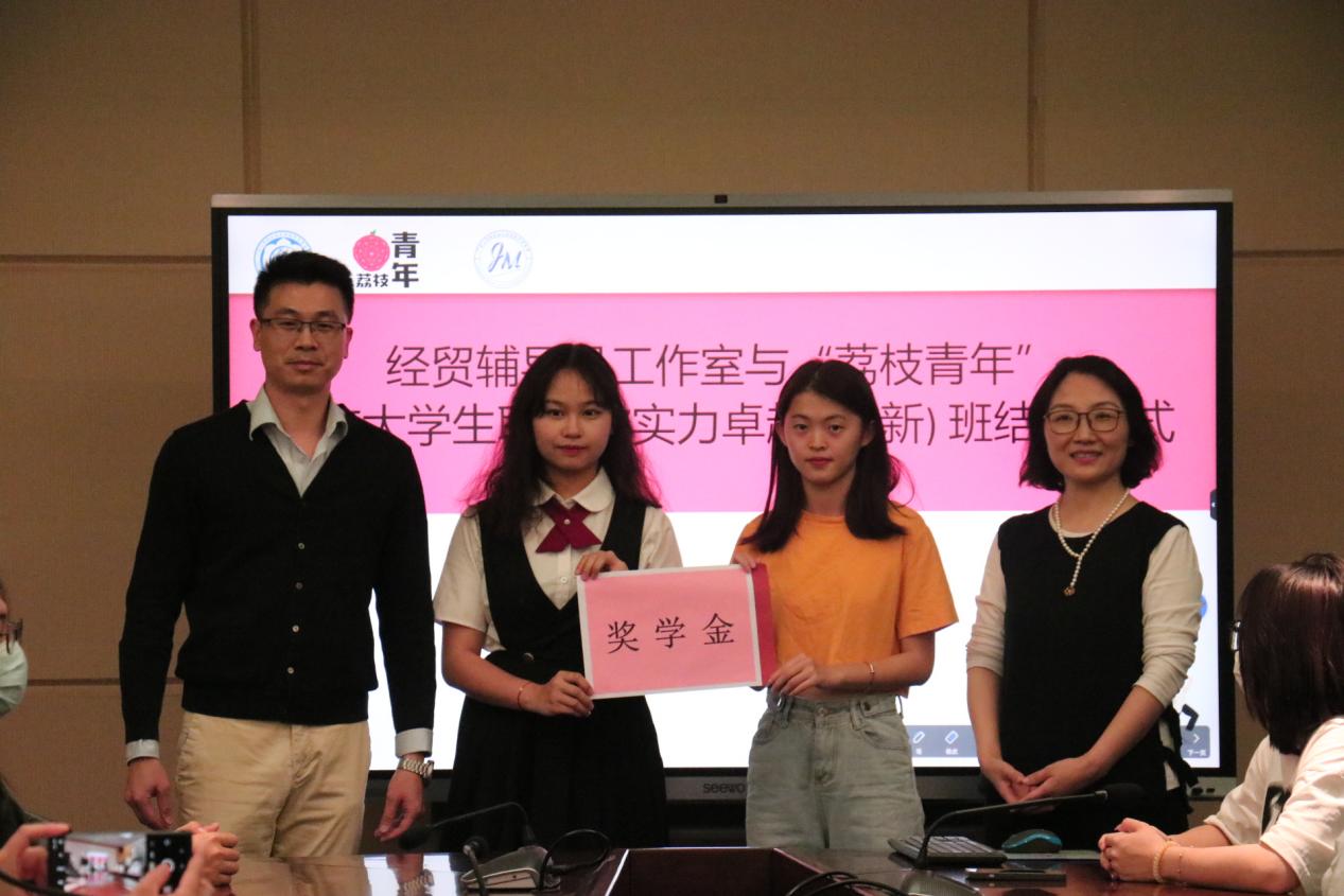 随后由“荔枝青年”会长张玉玲、经贸学院党总支书记李繁、经贸学院院长邱秀芳、经贸学院副院长蒋晶分别为经贸团委书记黄小奇颁发“先进个人”奖、奖学金、优秀学员证书及结业证书。