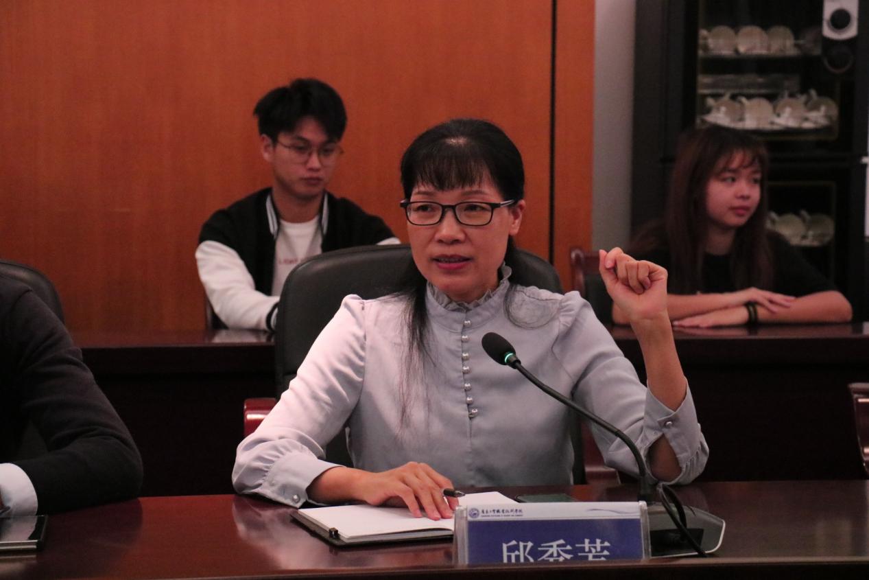 近年来经贸学院辅导员工作室与“荔枝青年”深入合作,旨在全面提升经贸学子职场综合素养,助力学生成长成才。大会开始,先由经贸学院院长邱秀芳为大家致辞,欢迎广州荔枝青年成长促进会会长张玉玲等人的到来并介绍本次大会的内容。