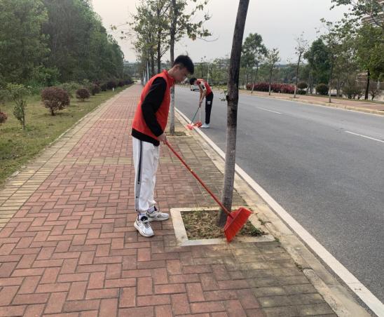 在炎热的下午,同学们手拿扫把、簸箕等工具,沿着湖边道路跟两边草坪进行清理,清扫地上的烟头,树上掉落的枯叶。充分发挥了我想做,我去做,我愿意做的积极思想。经过大家的团结协作,干净整洁的校园再次映入在眼帘。