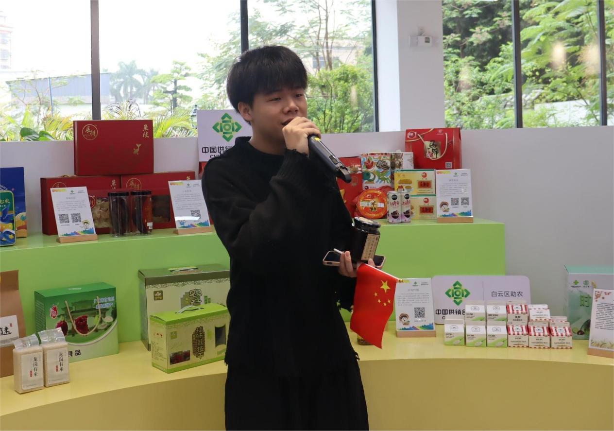 课上,邀请了供销合作联社三农服务人员详细地给同学们介绍助农综合服务中心的职能与发展概况,同时参观助农直播区和帮扶地区农特产品。近年来经济贸易学院和白云区供销合作联社密切合作,经贸学子把专业与时代发展需求结合起来,多次参与直播带货助农活动中,累计助农增收约10万元,让乡村振兴搭上了电商快车。在谈到直播带货话题中,李繁与学生互动,邀请学生现场即兴直播带货,课堂现场氛围十分热烈。