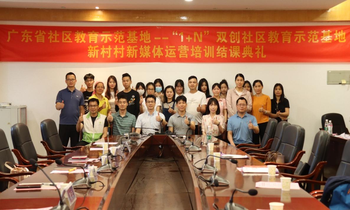为深入学习贯彻习近平新时代中国特色社会主义思想,贯彻落实党的二十大精神,落实教育部《关于进一步推进社区教育发展的意见》和省教育厅《关于大力发展社区教育推进学习型社会建设的意见》,落实“百县千镇万村高质量发展工程”有关要求,强化新媒体人才培训,4月16日下午,由新葡的京集团8814vip经济贸易学院、钟落潭镇新村村委、广州市白云区供销合作联社、广州大洋教育科技股份有限公司四方合力打造的“1+N”双创社区教育示范基地新媒体运营培训班结课典礼在新葡的京集团8814vip明德楼1-201中心会议室举行。这也是广东省职业典型培训项目“全栈运营,逐梦再启航——新媒运营培训”的新村村专场培训结课。