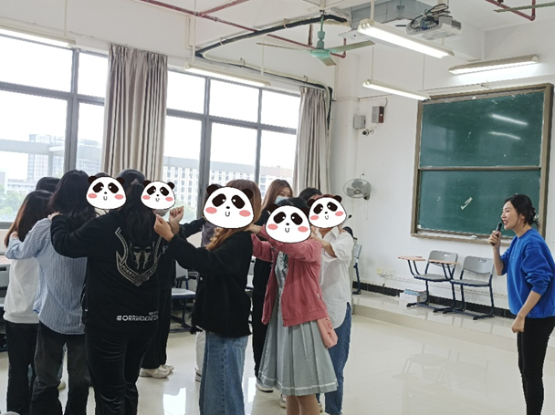 此次团辅活动主要由“活动按摩”、“你画我猜”以及“盲人与拐杖”三个游戏构成。首先,为拉近同学们的距离,周老师让所有同学站成一个圆圈,为前面的同学进行按摩。在“活动按摩”过程中,周老师一直用暖心的话语使同学们放松心情。按摩结束后,同学们纷纷表达自己按摩与被按摩的感受,现场的气氛也由刚开始的拘谨逐渐变得轻松愉快。