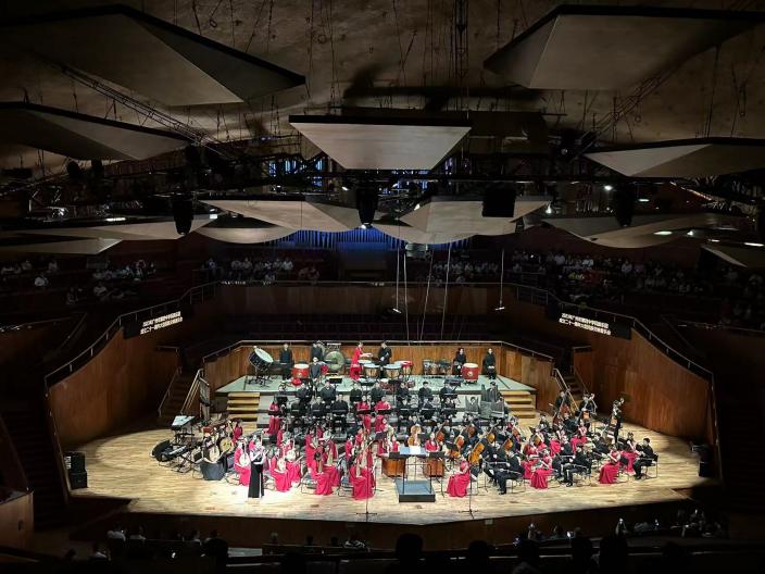 本次音乐会的主题是《赓续血脉传经典,弦歌不辍谱新篇》,由广州市第四中学民族乐团呈现。音乐会在唯美的民族乐剧《印象国乐》第三乐章《大曲》中拉开序幕,演奏者通过二胡、阮琴、唢呐、大提琴等多种乐器,倾情演绎了《旱天雷》《再唱山歌给党听》《中国婚嫁》《荔枝红》《山歌》等9首大众耳熟能详的红色经典曲目及民族乐曲。在气势恢宏的音乐和热血沸腾的民族乐中,表演者们用沉浸式的演出带着师生党员重温了党的历史,把“爱国、进步、民主、科学”的五四精神展现得淋漓尽致,极富感染力和冲击力,彰显了音乐和舞蹈打动人心的独特力量,温暖人心,催人奋进。