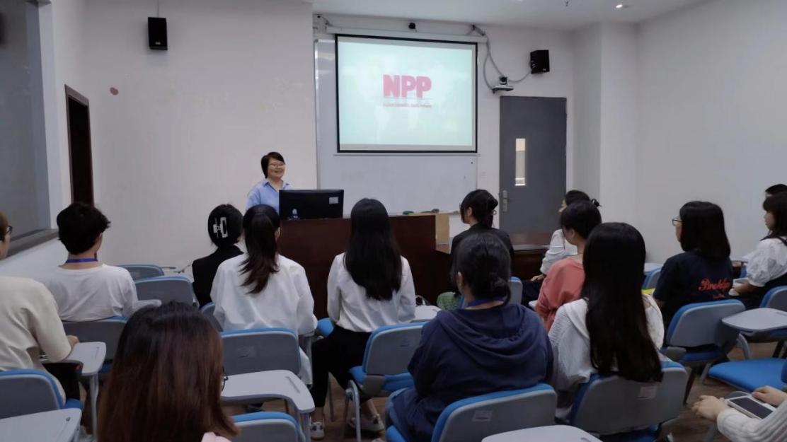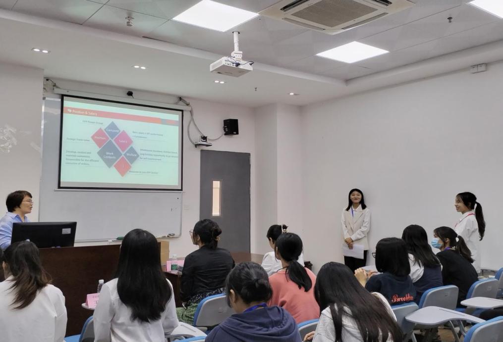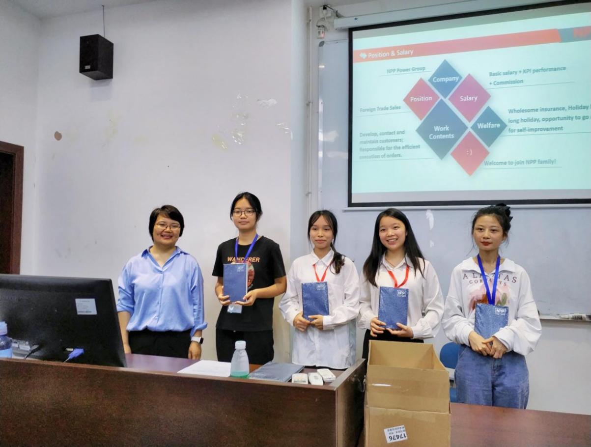 王倩老师带领着同学们一起回顾了过去中国光伏外贸行业的发展和广州市耐普电源有限公司外贸领域所取得的成绩,分享了中国外贸行业现状以及外贸工作者的职业精神,让同学们进一步了解到贸易行业现状,提前为实习做好规划,更进一步了解外贸行业工作状态,提前做好心理准备。