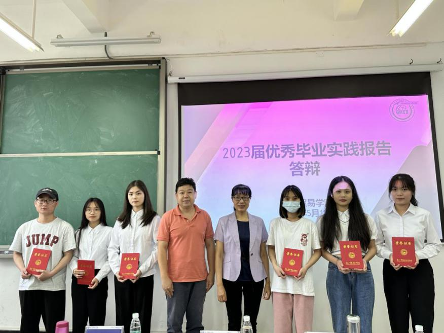 最后,邱秀芳和三位系主任为本次优秀毕业实践报告颁奖。本次优秀毕业实践报告答辩肯定了学生们在实习工作之余,认真完成实践报告作品所付出的努力,以及同学们在工作中所取得成绩,同时也充分肯定了经贸学院指导老师们在整个实践报告工作中各个阶段的辛苦付出。