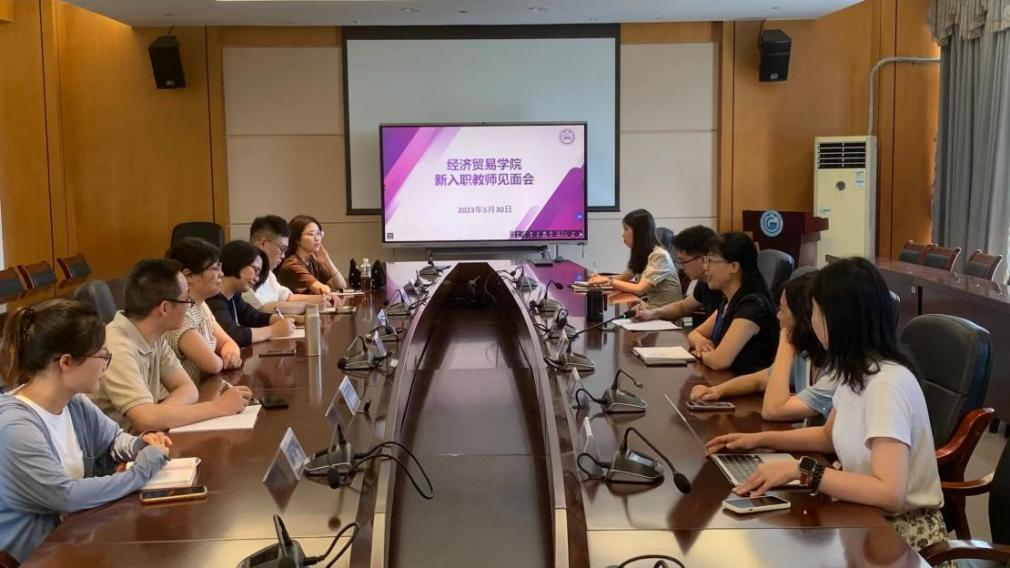 为推动经济贸易学院高质量发展,帮助新教师更快地适应工贸生活,经济贸易学院于5月30日在明德楼1-201会议室召开新入职教师见面会。经济贸易学院党总支书记李繁,党总支副书记、院长邱秀芳,营销系主任严琳,商贸系副主任谷少永,教务员陈靖云、潘嘉琪,以及黄华乾博士、叶彬彬博士、陈建兰博士、邓妙老师、夏瑜璟老师、苏德坤老师等6位新入职教师参加本次会议,会议由邱秀芳主持。
