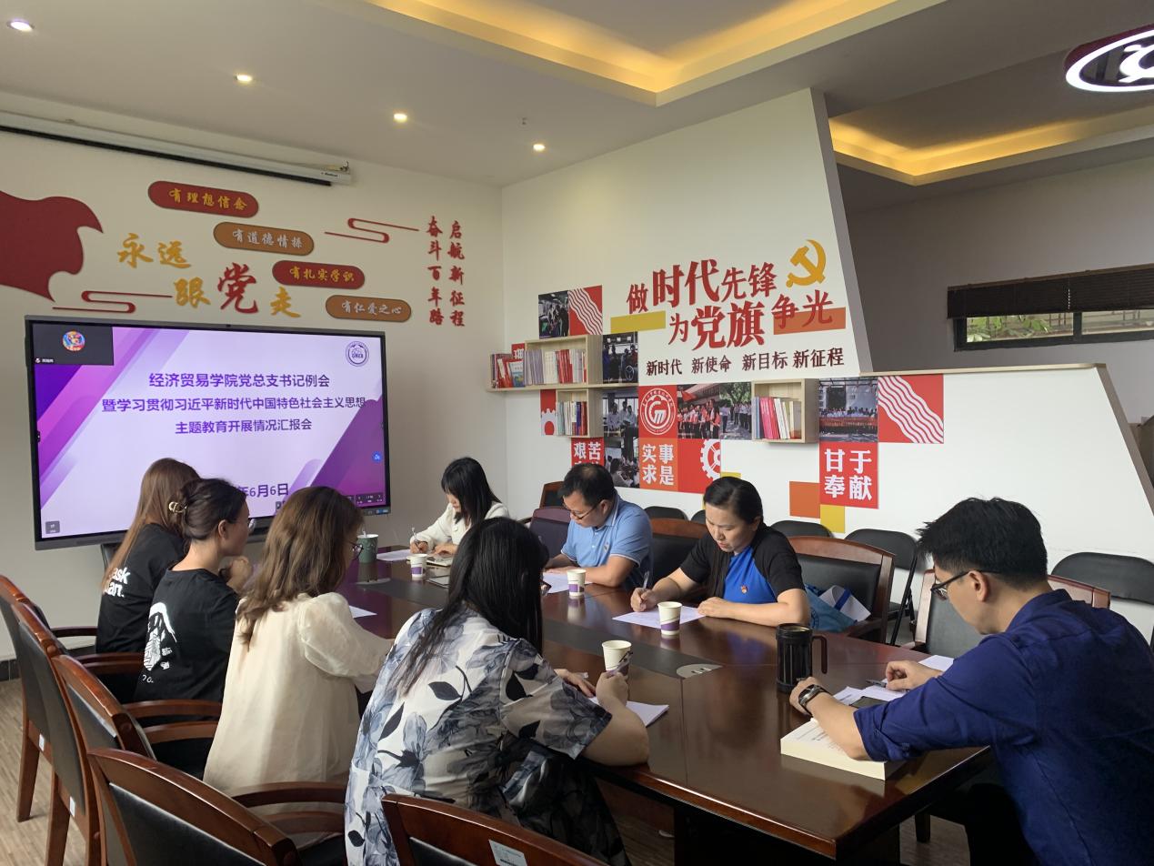 为推进学习贯彻习近平新时代中国特色社会主义思想,贯彻落实党的二十大精神,6月6日下午在明德楼1-217,经济贸易学院党总支召开了书记例会暨学习贯彻习近平新时代中国特色社会主义思想工作推进会。学院党总支支委、各师生党支部书记参会,会议由党总支书记李繁主持。