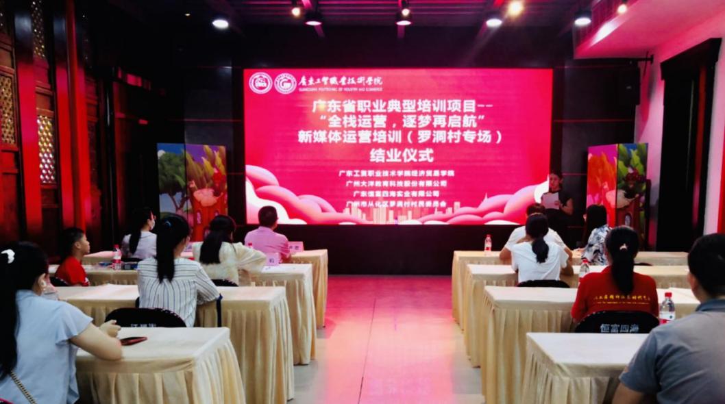 为贯彻落实习近平新时代中国特色社会主义思想,为进一步提升职业院校主动服务国家和区域发展战略的能力,聚焦重点领域、重点人群,精准对接产业发展需求,帮助广东省乡镇劳动力抓住数字时代机遇,由广东工贸联合广州大洋教育科技股有限公司、广东各有所爱信息科技有限公司、广州点上企业管理咨询有限公司联合打造,面向农民工、退役军人、企业职工、农村转移劳动力、下岗职工等人群的广东省职业典型培训项目“全栈运营,逐梦再启航——新媒运营培训(罗洞村专场)”于6月1日正式结课。