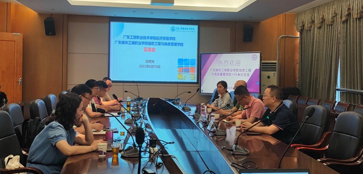 为打造校际间专业共建和资源共享合作机制,实现高质量共赢发展,6月16日上午,广东南华工商职业技术学院信息工程与商务管理学院常务副院长肖伟、电子商务群主任陈华毅、电商负责人佘碧蓉及骨干教师彭韬一行来到新葡的京官网经济贸易学院访问交流,双方于明德楼1-201会议室举行交流座谈会。经济贸易学院院长邱秀芳、营销系主任严琳、商贸系主任霍杰、商贸系副主任谷少永、市场营销专业带头人黄华乾博士以及双方学生代表出席本次会议。