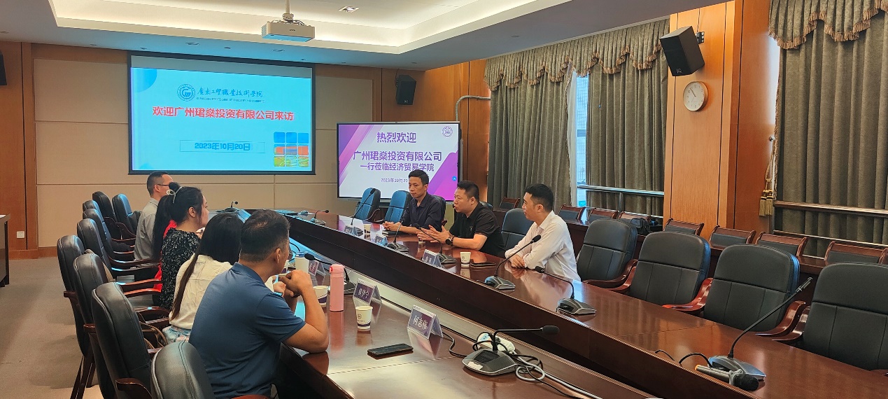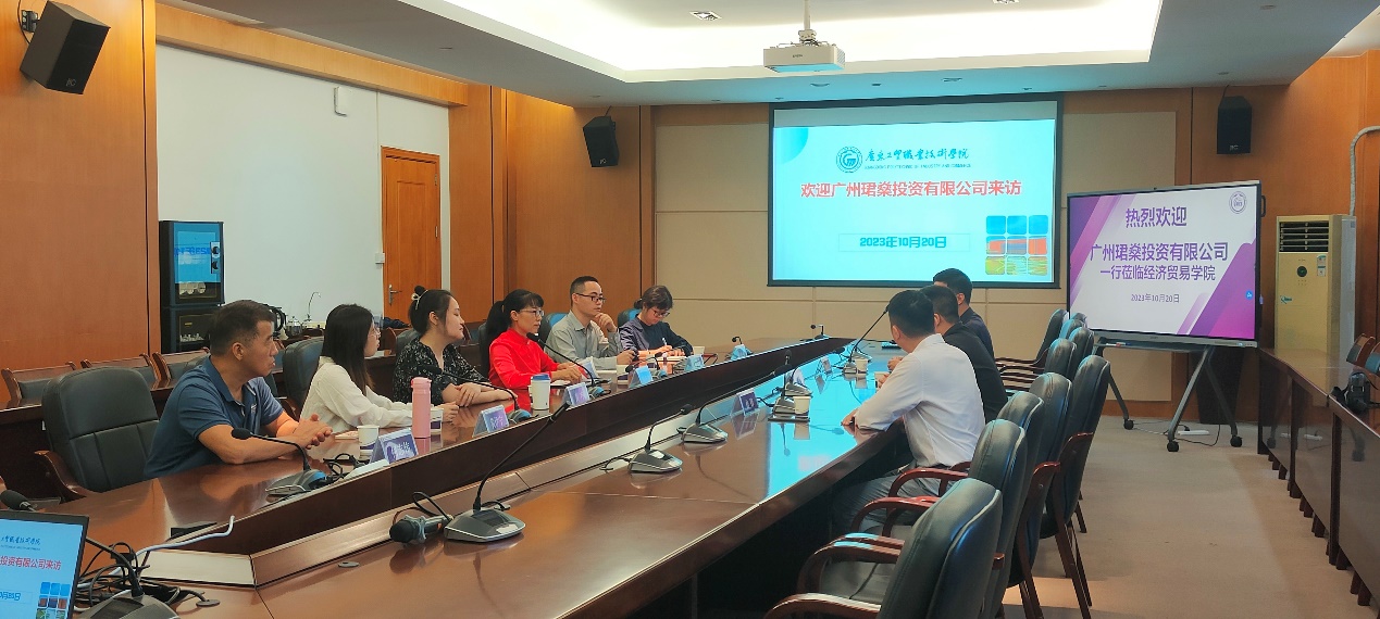 为学习贯彻习近平新时代中国特色社会主义思想和党的二十大精神,深化校企合作,推进产教融合,10月20日上午,广州珺燊投资有限公司营运总经理郭野、校企合作负责人谢伟龙等一行到访我院。经济贸易学院院长邱秀芳,以及市场营销骨干教师黄华乾、余媛、何志伟、黄卉和黄伊宁热情接待。双方于明德楼1-201会议室举行座谈会,会议由邱秀芳院长主持。
