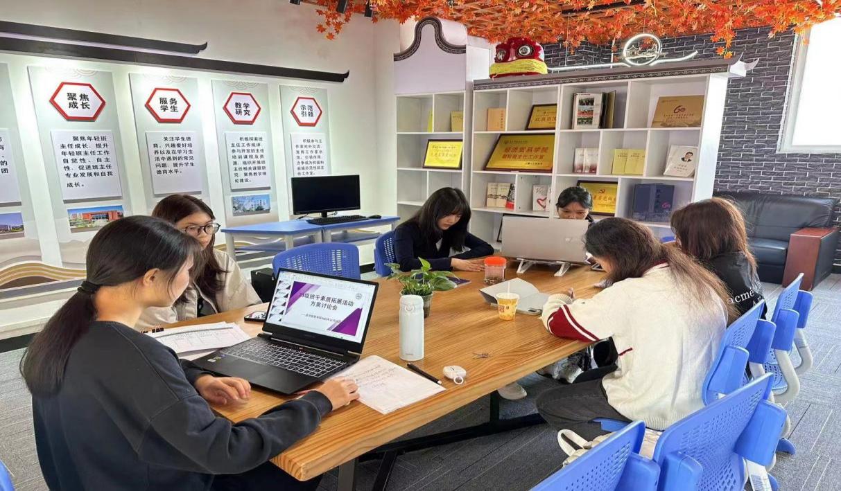 为了进一步推动“一站式”学生社区的建设,促进朋辈交流,鼓励学生积极参与学校活动,帮助班干部提升班级管理能力,11月25日上午,经济贸易学院在宿舍楼16栋班主任工作室举办了朋辈交流会。由23电商7班李洁秋和跨境电商1班林懂玟组织开展班干部素质拓展活动方案的交流研讨会,23级部分班干部参与会议。