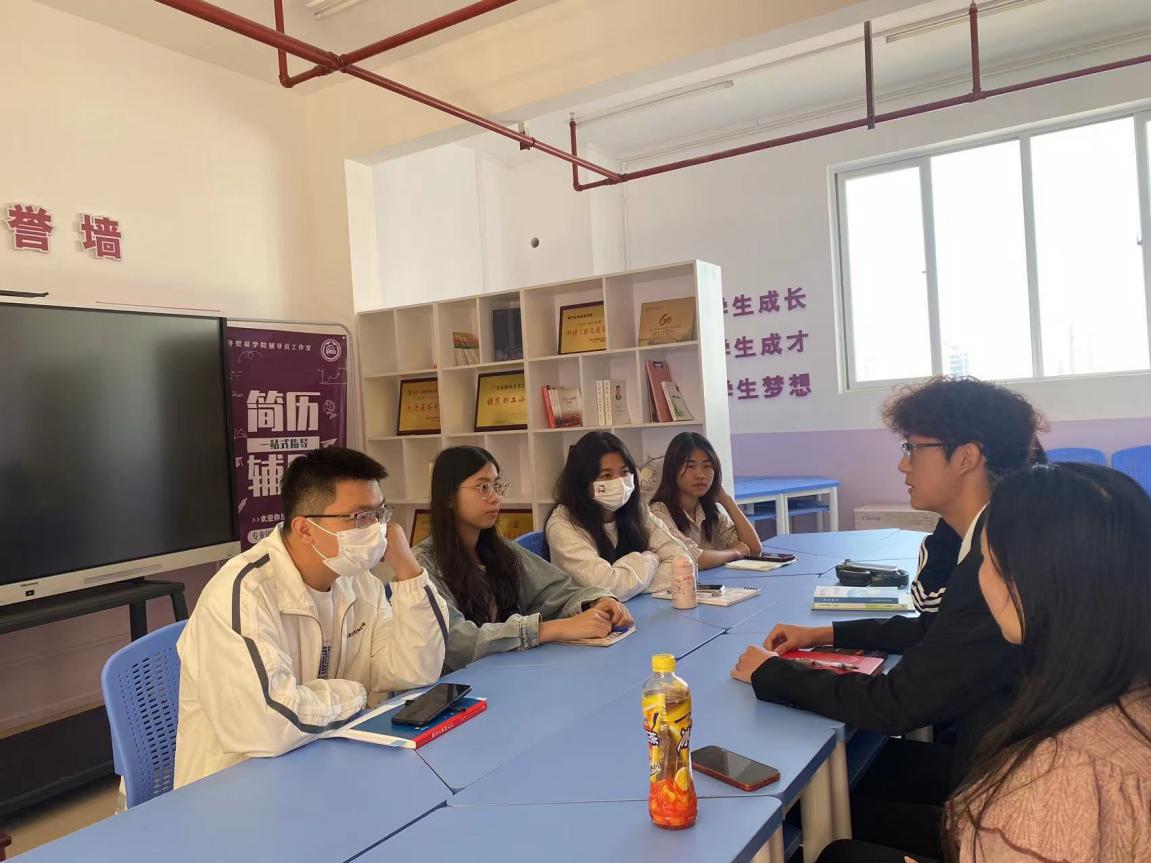 朋辈导生黄泽豪介绍了当天招聘会现场情况,结合自身面试和实习经历向同学们分享经验,询问同学们在就业和职业发展方面的问题并一一解答,同时还向同学们介绍了就业与升学的相关内容,建议同学们结合自身情况,寻找更合适的道路。除此之外,黄泽豪介绍了学校的社团组织和向同学们提供的学生工作岗位,鼓励同学们可以通过积极参加社团和辅助老师开展学生工作等方式来提升自身的实践能力。