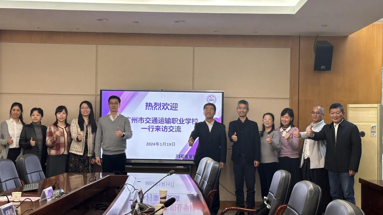 1月19日上午,广州市交通运输职业学校副校长齐忠志,主任张毅,专业部长黄婉文,教师叶剑峰、莫露全、梁忠银一行6人,赴新葡的京官网经济贸易学院开展学习交流活动。经贸学院党总支书记李繁,经贸学院副院长蒋晶,市场营销专业教授彭娟,市场营销专业高层次人才、博士邓颖仪,跨境数字营销系骨干教师冯玥怡等领导老师热情接待来访,双方于明德楼1-201会议室举行座谈会,会议由李繁主持。