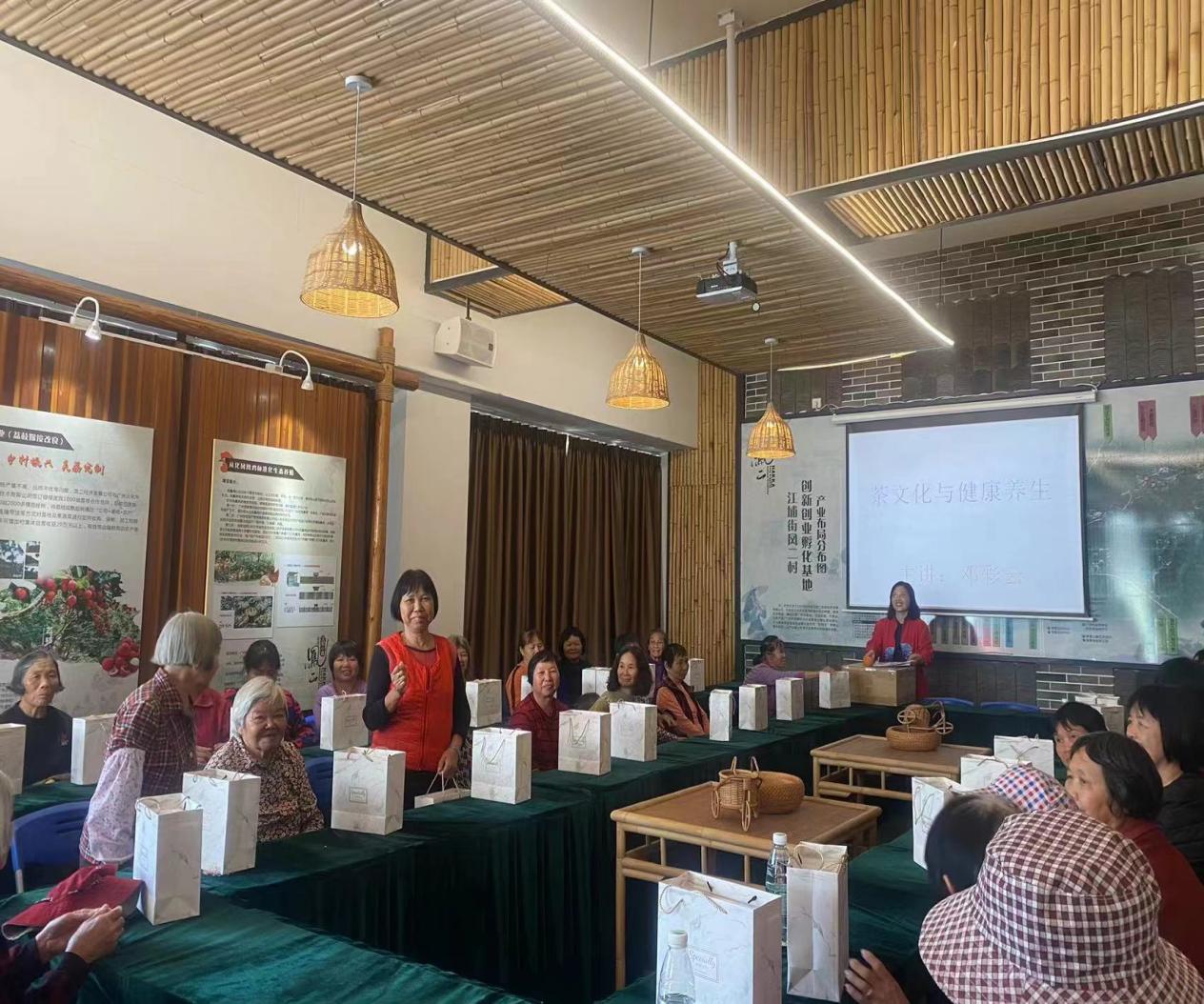 为优化社区助老服务,丰富社区居民文化活动,提高凤二村村民生活质量、人文精神素质,打造具示范引领与促进作用的社区示范基地,“广东工贸—从化江浦街凤二村全媒体助力乡村振兴社区教育示范基地”项目团队特邀广州涧洛偲国际贸易有限公司邓彩云女士为社区老人们开展了一场《茶文化与健康养生》讲座。凤二村四十余位老人参与了本次讲座,在有趣的互动中学习了解了中国茶文化和及中医养生之道,充实生活之余丰富了精神世界。