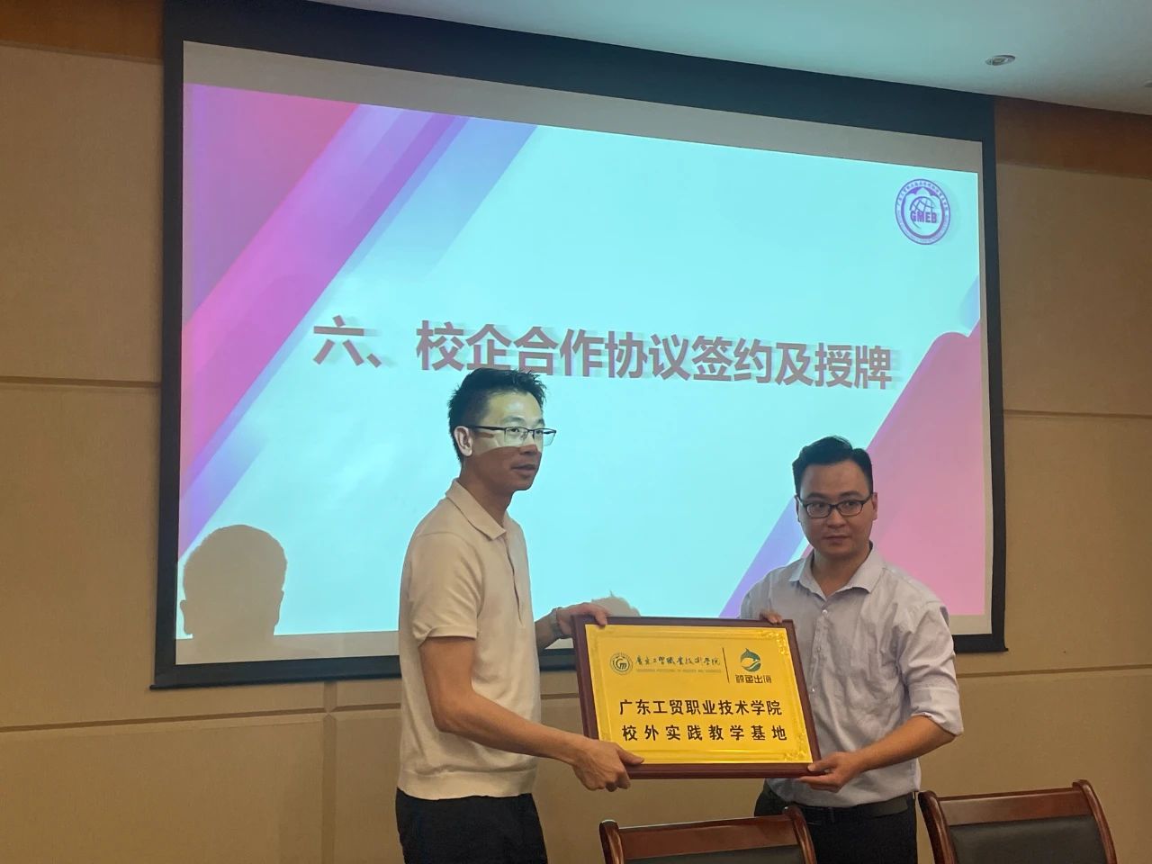 继3月27日我院市场营销专业师生赴广州鲸鱼出海科技有限公司参观之后,院领导及教师与企业方进行了多方洽谈,就双方合作的方式、内容及未来预期进行了进一步深入沟通,4月16日,校企合作项目终于迎来阶段性成果——新葡的京集团8814vip-广州鲸鱼出海科技有限公司校企合作签约暨鲸鱼精英特训班(第一期)签约仪式。出席本次会议的人员有经济贸易学院党总支书记李繁、副院长蒋晶、市场营销专业带头人黄华乾、市场营销专业教师:杨海娜,黄璜,冯玥怡,杜耀国,鲸鱼出海研究院院长杨桃、运营总监李慧慧、运营讲师等。