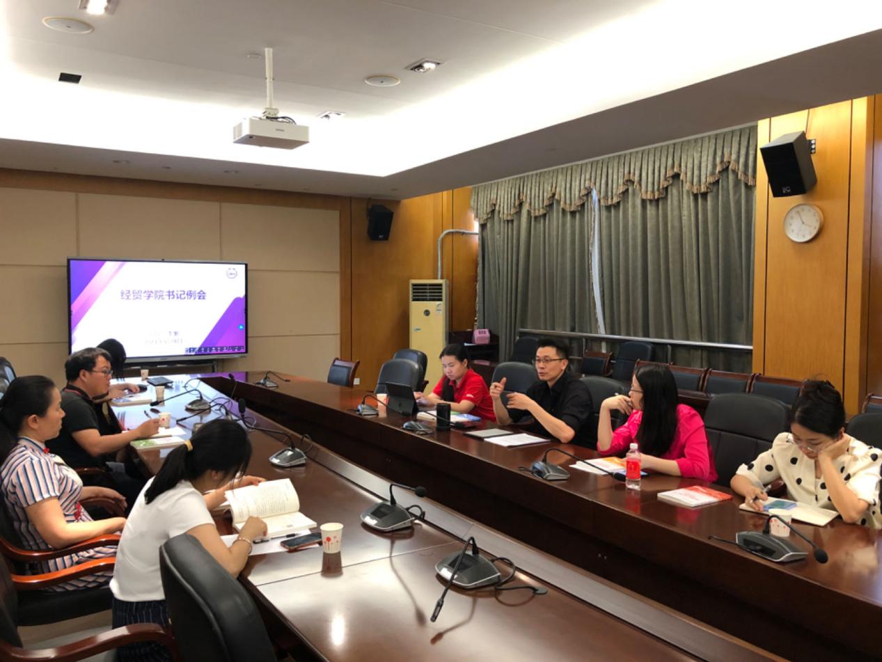 为推进学习贯彻习近平新时代中国特色社会主义思想,贯彻落实党的二十大精神,落实学校党委相关部署和要求,扎实推进党纪学习教育,认真研学教育部《教师党建与思政工作质量标准(试行)》,5月9日下午,经济贸易学院党总支于白云校区明德楼1-201会议室召开书记例会。会议由经贸学院党总支书记李繁主持。