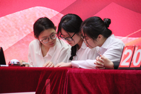 为加强观众的参与度,现场还设有互动环节——听歌识曲。红歌刚刚响起,观众纷纷举手抢答。这种听歌识曲的学习形式吸引了同学们的兴趣,歌声绕梁也使得紧张刺激的竞赛现场更加鲜活有趣。
