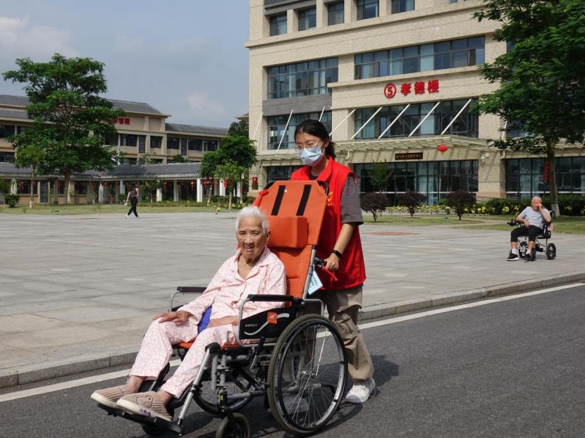 推轮椅老人散步