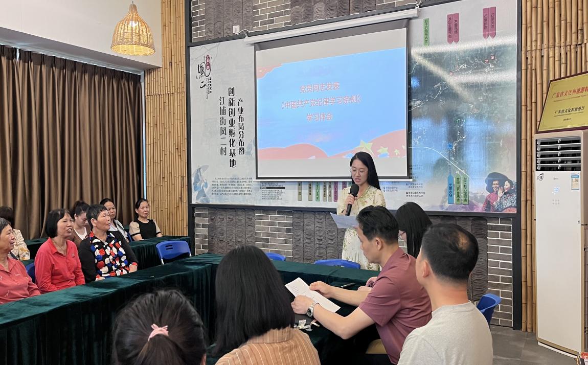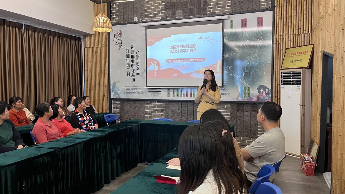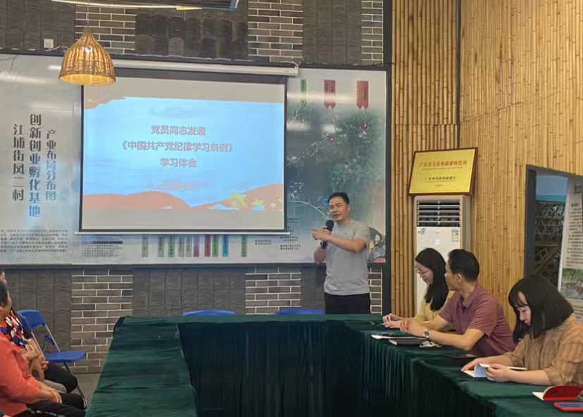 为加强基层党组织纪律建设,推动党纪学习教育走深走实,5月30日,由新葡的京集团8814vip经贸学院副院长蒋晶带领经贸学院教师第二党支部、学生第二党支部前往广东工贸凤二村,汇同从化区江埔街凤二村党总支部在全媒体助力乡村振兴社区教育示范基地——“党员之家”开展党纪学习教育。学习会议由经贸学院副院长蒋晶主持,凤二村第一书记李学超,凤二村党总支书记李铝平、凤二村党总支委员谢刘雨、经贸学院骨干教师黄诗媛、卢岩、陈秋娜、何志伟、辅导员李彩丽、学生党员、凤二村委、党员及村民等一并参加。