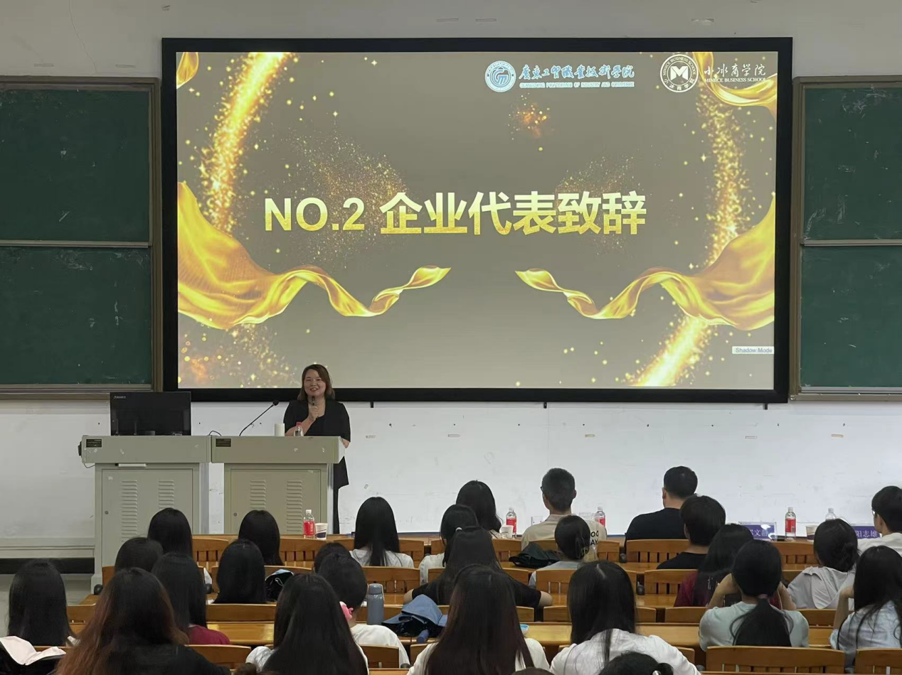 邹文静代表企业致辞。她对学校实训教学的成果给予了高度评价,并表示将继续深化校企合作,为学生提供更多实践机会,共同培养更多高素质技能人才。