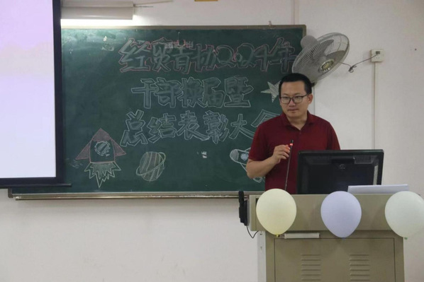 为深入学习贯彻习近平新时代中国特色社会主义思想和党的二十大精神,团结带领广大青年志愿者勇担职责使命,坚持守正创新,弘扬志愿风尚,进一步壮大经贸青年志愿者队伍,完善服务体系,经济贸易学院青年志愿者分会于2024年6月18日在明德楼2区201举行干部换届暨总结表彰大会,参加此次会议的有青协指导老师章少重和青协全体成员。