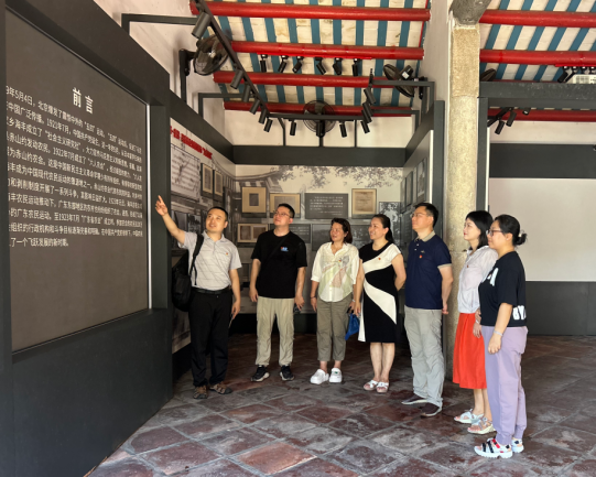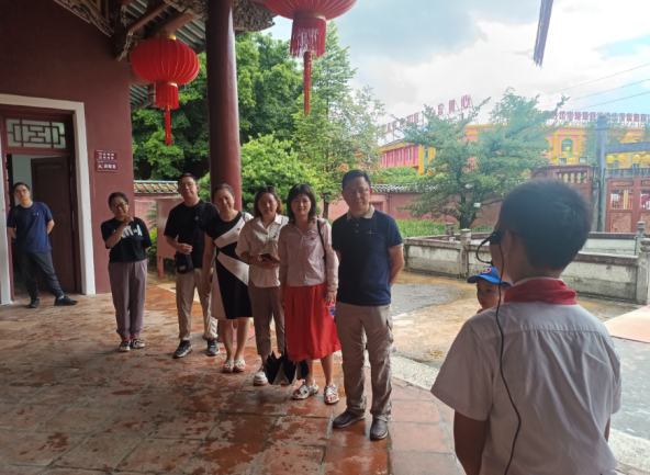 午后,党员队伍驱车前往赤山约农会旧址,这里是海陆丰农民运动的重要发源地之一。漫步在古朴的村落中,党员们仿佛穿越回那个激情燃烧的岁月,感受着革命先辈们不屈不挠、勇于斗争的精神风貌。在旧址前,大家认真聆听讲解,仔细观看展板,深刻体会到了农会组织在发动群众、开展土地革命中的重要作用,以及革命先辈们为争取民族独立和人民解放所付出的巨大牺牲。