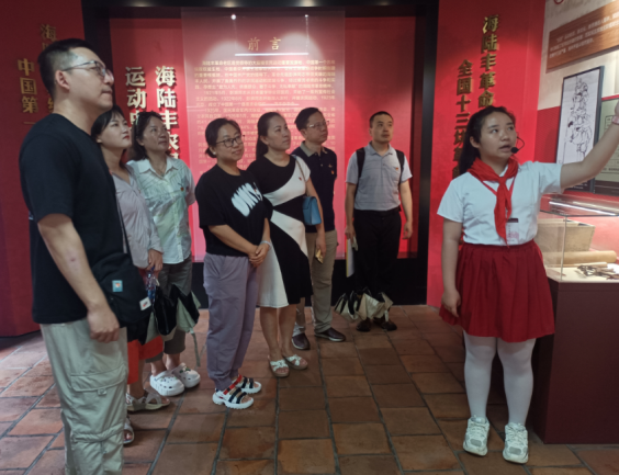 在红宫红场,党员们首先瞻仰了彭湃烈士铜像,并面向鲜红的党旗,重温入党誓词,誓言铿锵有力,回响在历史的天空下。随后,在讲解员的带领下,大家依次参观了红宫、红台等历史建筑,通过一幅幅珍贵的历史照片、一件件斑驳的革命文物,深入了解了海陆丰农民运动的发展壮大、中国第一个苏维埃政权的诞生以及彭湃等革命先烈为革命事业英勇奋斗、无私奉献的感人事迹。